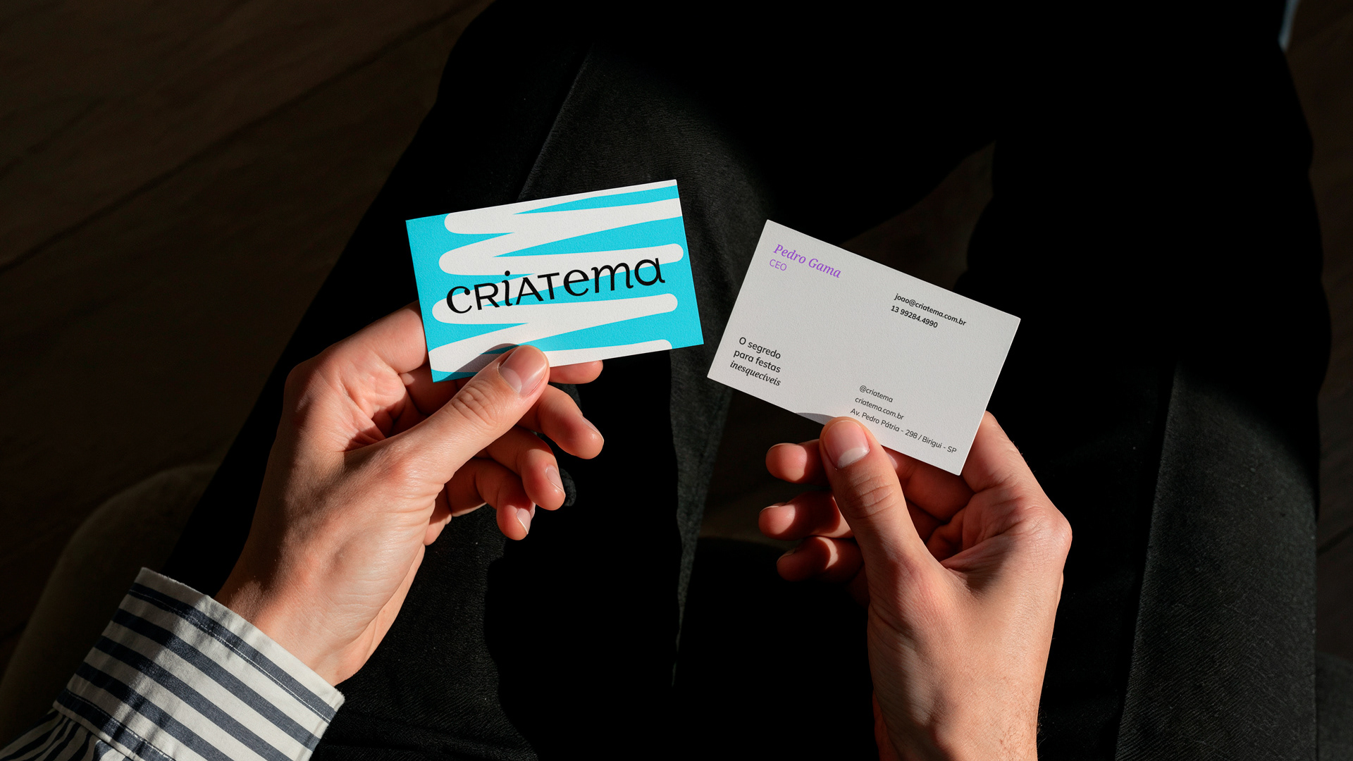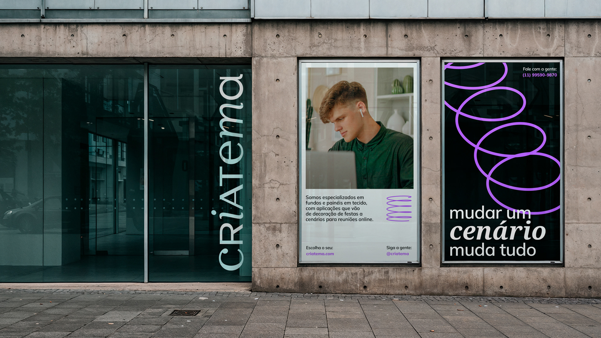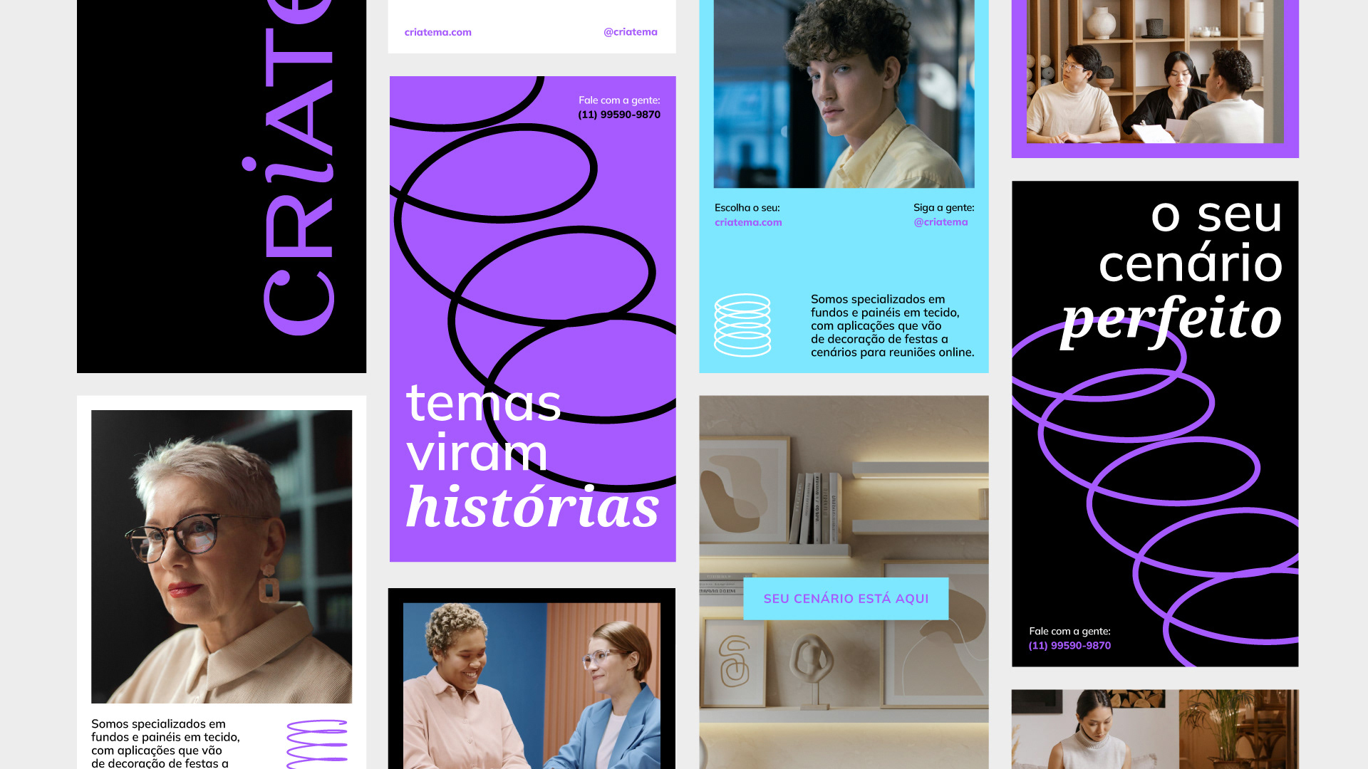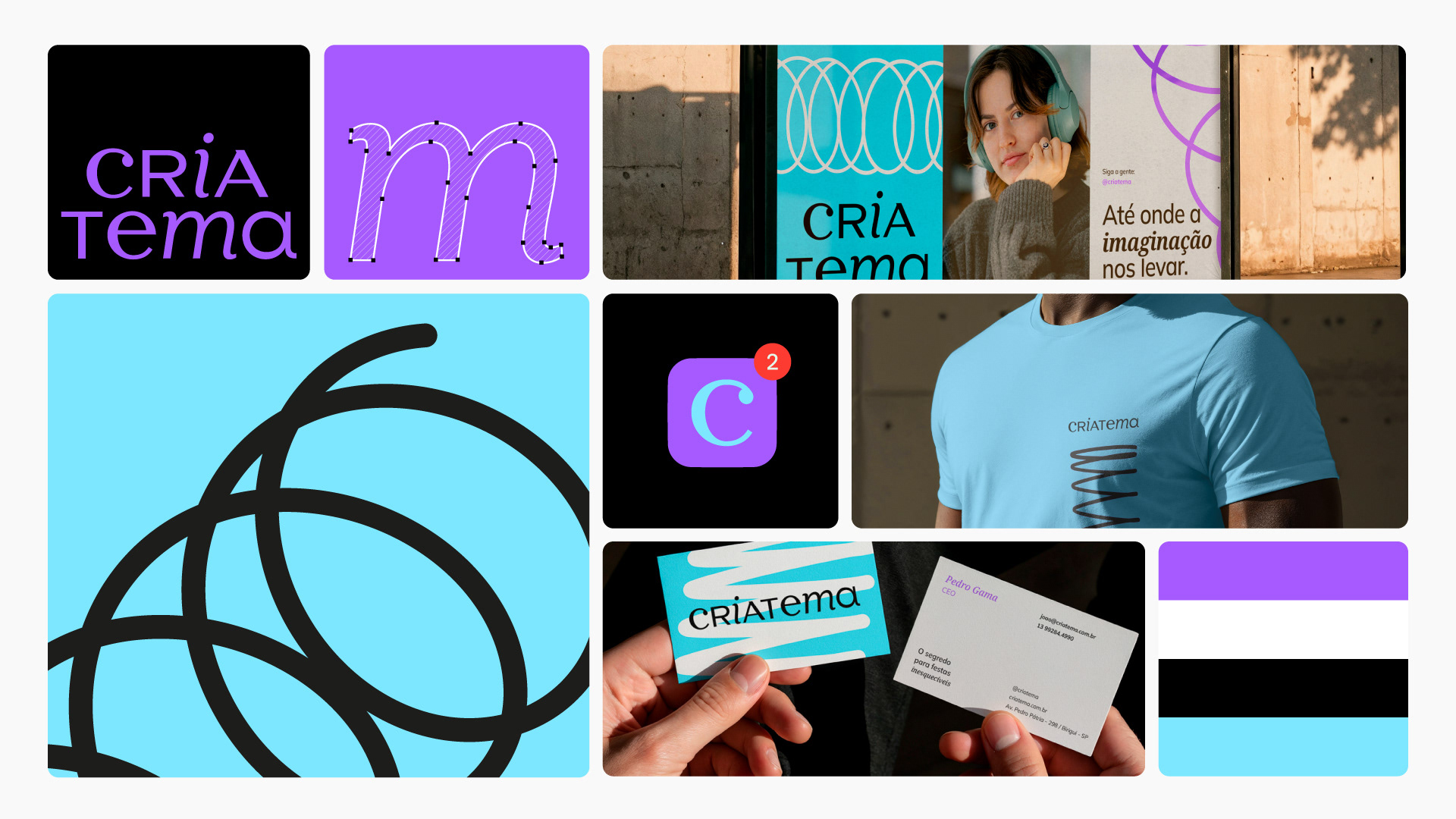 EN — The name Criatema was developed from the combination of two core elements: criar (to create) and tema (theme). This linguistic construction defines, in an objective way, the brand’s purpose: bringing spaces to life. Whether through party decorations, online meeting backdrops, or photographic studios, the brand delivers fabric backdrops and panels that completely transform atmospheres.
