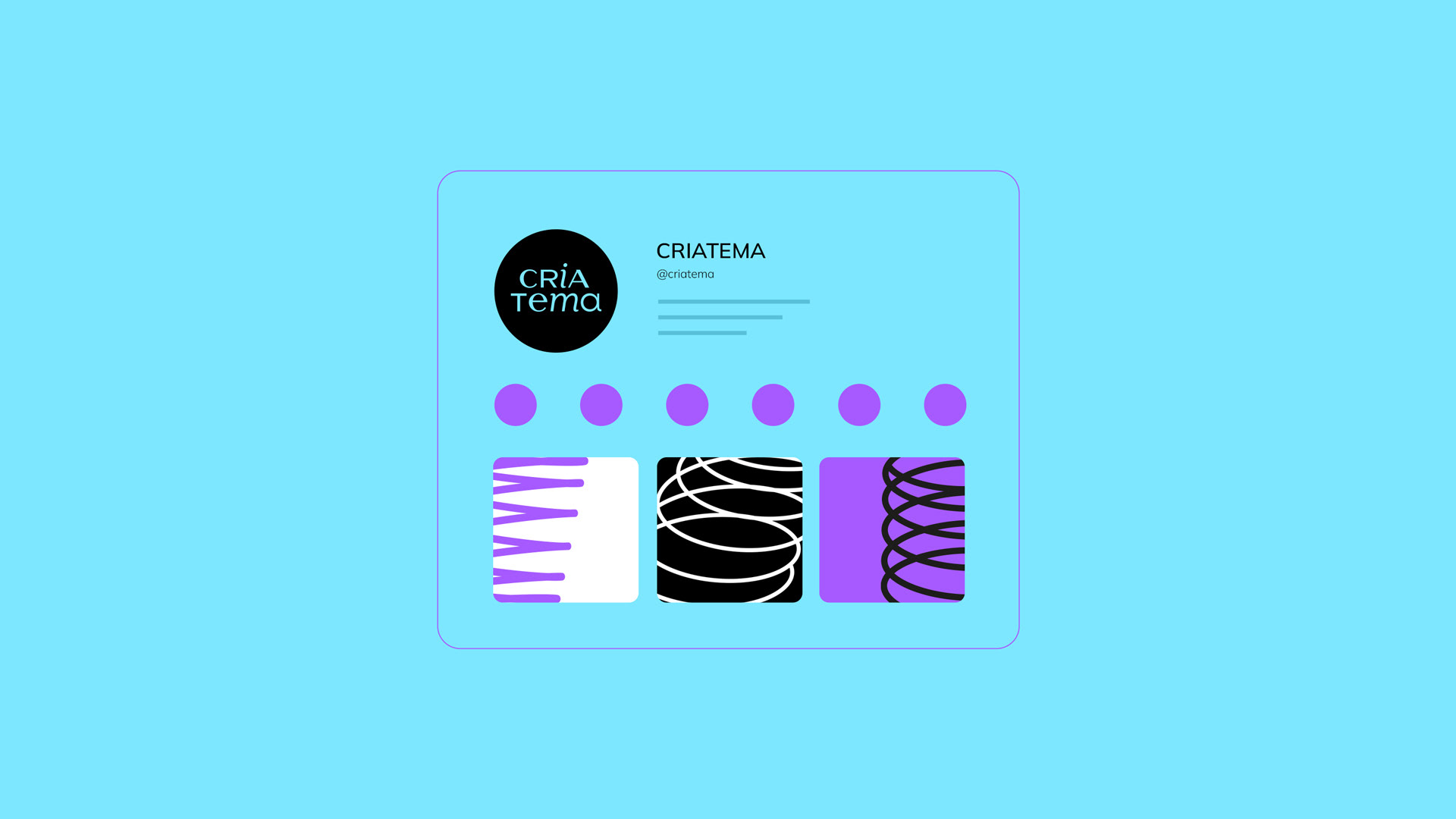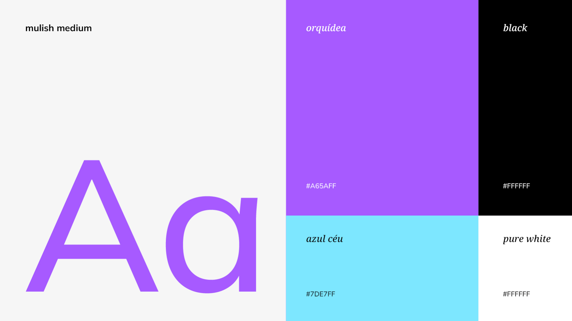 The color palette brings together creativity and trust. Purple symbolizes imagination and boldness, blue conveys freshness and closeness, black adds strength and seriousness, while white ensures clarity and balance. Together, these tones construct a strong and versatile visual universe, effective across formats from digital to physical.