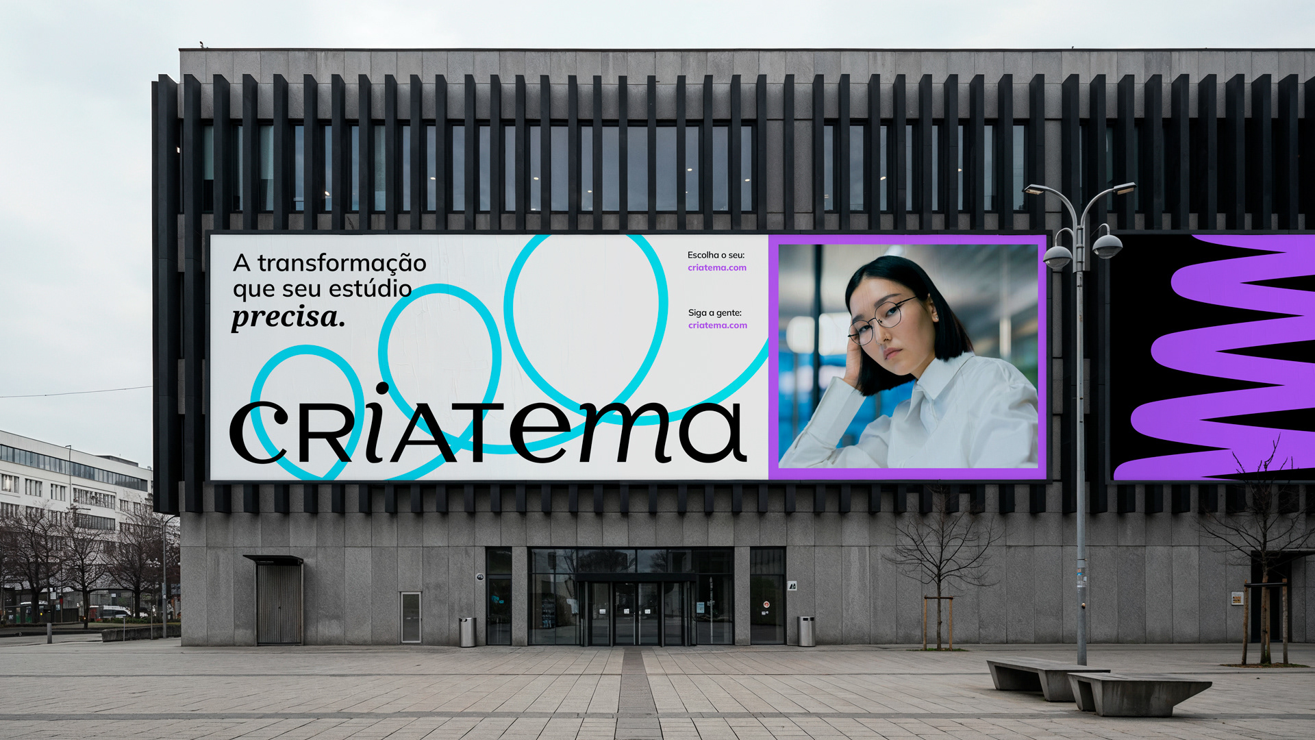 O logotipo traduz essa flexibilidade: a tipografia mistura inspirações modernas e clássicas, criando um visual que não fica preso a um único estilo. Isso também inspirou a família tipográfica escolhida para a marca, que combina uma sans serif geométrica, leve e atual, com uma serifada humanista, que transmite tradição e refinamento. Esse contraste equilibra contemporaneidade e atemporalidade, reforçando assim a capacidade da Criatema de se adaptar a diferentes contextos.